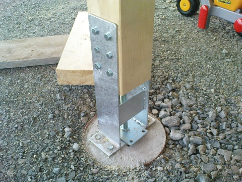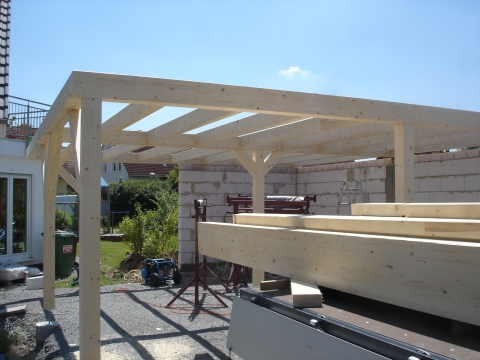 Garage auf Holzsäulen mit sichtbarer Balkendecke -